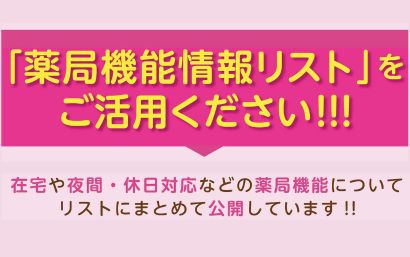 その他の薬局機能(感染症対応を担う薬局やオンライン服薬指導の実施可否、一般用医薬品の取扱い状況等)に係る薬局リストを更新しました。 -